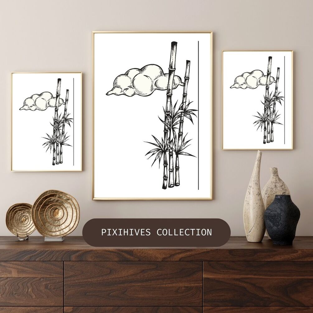 Vintage Bamboo Black and white color Wall Art | Antique White Bamboo Black and white color Chinese Traditional Art Print | Digital Printable Download Files |